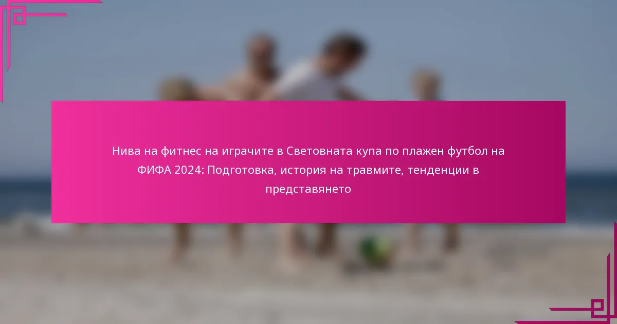 ФИФА Световната купа по плажен футбол 2024 подчертава критичната роля на нивата на физическа подготовка на играчите, фокусирайки се върху кондицията, историята на травмите и тенденциите в представянето. Ефективните стратегии за кондициониране са от съществено значение за подобряване на физическото представяне и предотвратяване на травми, докато историята на травмите на играча може значително да повлияе на способностите му на терена. Докато отборите се стремят към успех, корелацията между управлението на фитнеса и резултатите от мачовете става все по-очевидна.